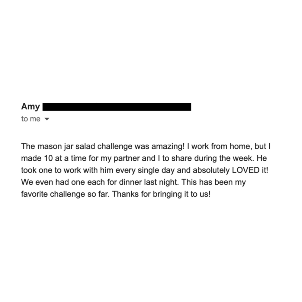 We'll show you our formula for layering the perfect salad in a jar, and we'll answer any questions you might have about mason jar salads. Our 10-day Mason Jar Salad Challenge and transform your lunchtime routine!